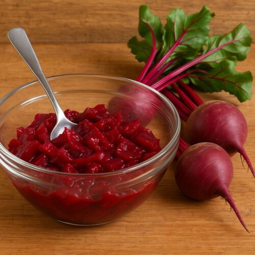 Si vas a utilizar la remolacha que viene lista, córtala en cuadritos pequeños. Si vas a utilizar remolacha fresca, cocínala en agua con sal hasta que esté suave. No la cocines junto a la papa y la zanahoria porque el agua se tiñe de rojo y se mancharían las papas.